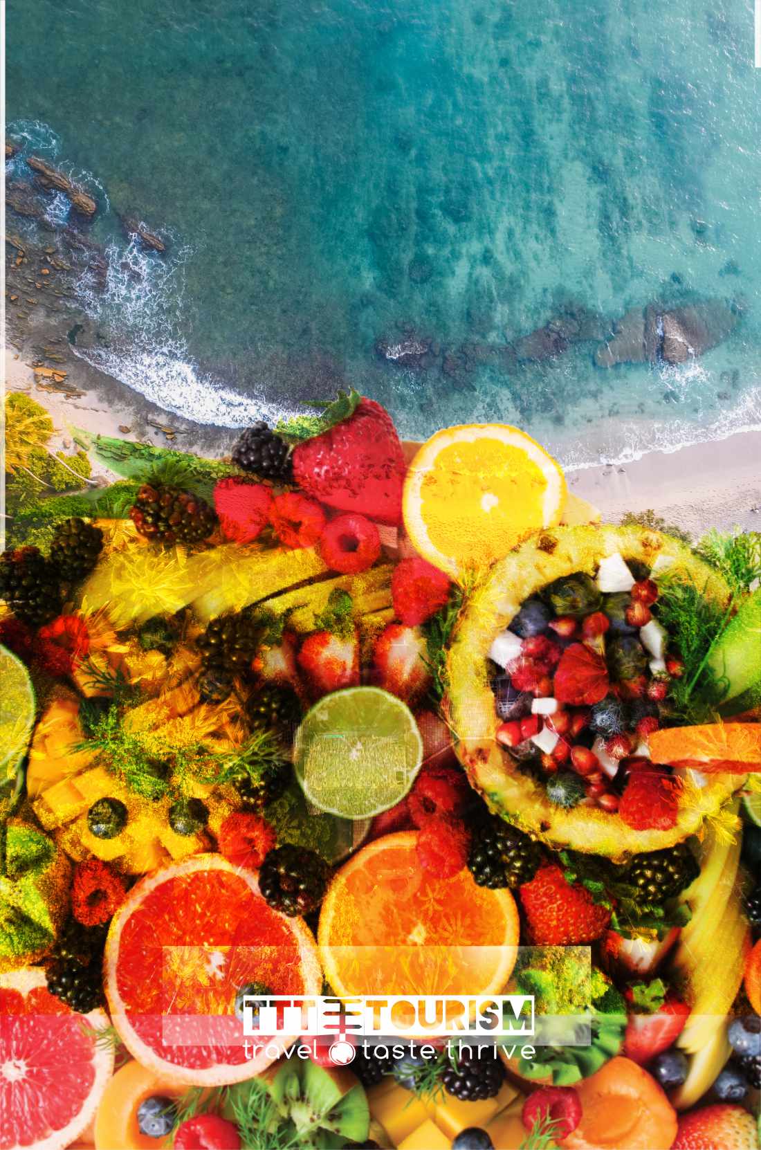 The following campaign is aimed at promoting exotic culinary tours around the world by emphasizing the freshnes and uniqueness of ingredients. As the other campaigns powerffull colors and combinations of sun and food are promoted to give a felling of exoticness and special to the entire campaign. The company portraits itself as an gate (even from the logo form), a guide to the rich experiences provided by the tours. This is the main product type offered by this imaginary company :); The campaign also uses the tagline "Travel Taste Thrive" to establish the points on which the brand functions.